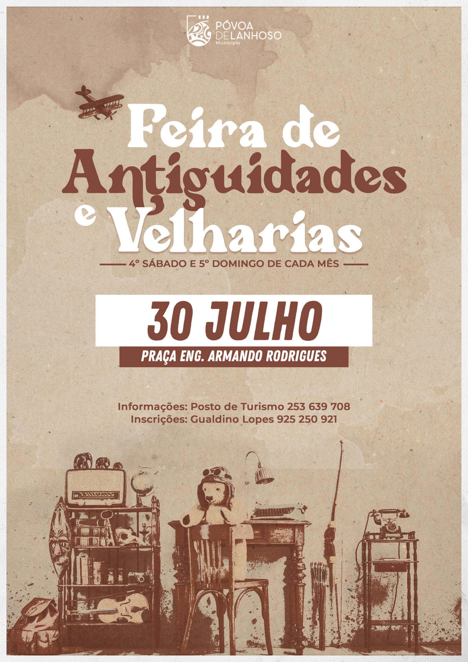 A Feira de Antiguidades e Velharias realiza-se no dia 30 de julho na Praça Eng. Armando Rodrigues, entre as 8h00 e as 18h00.