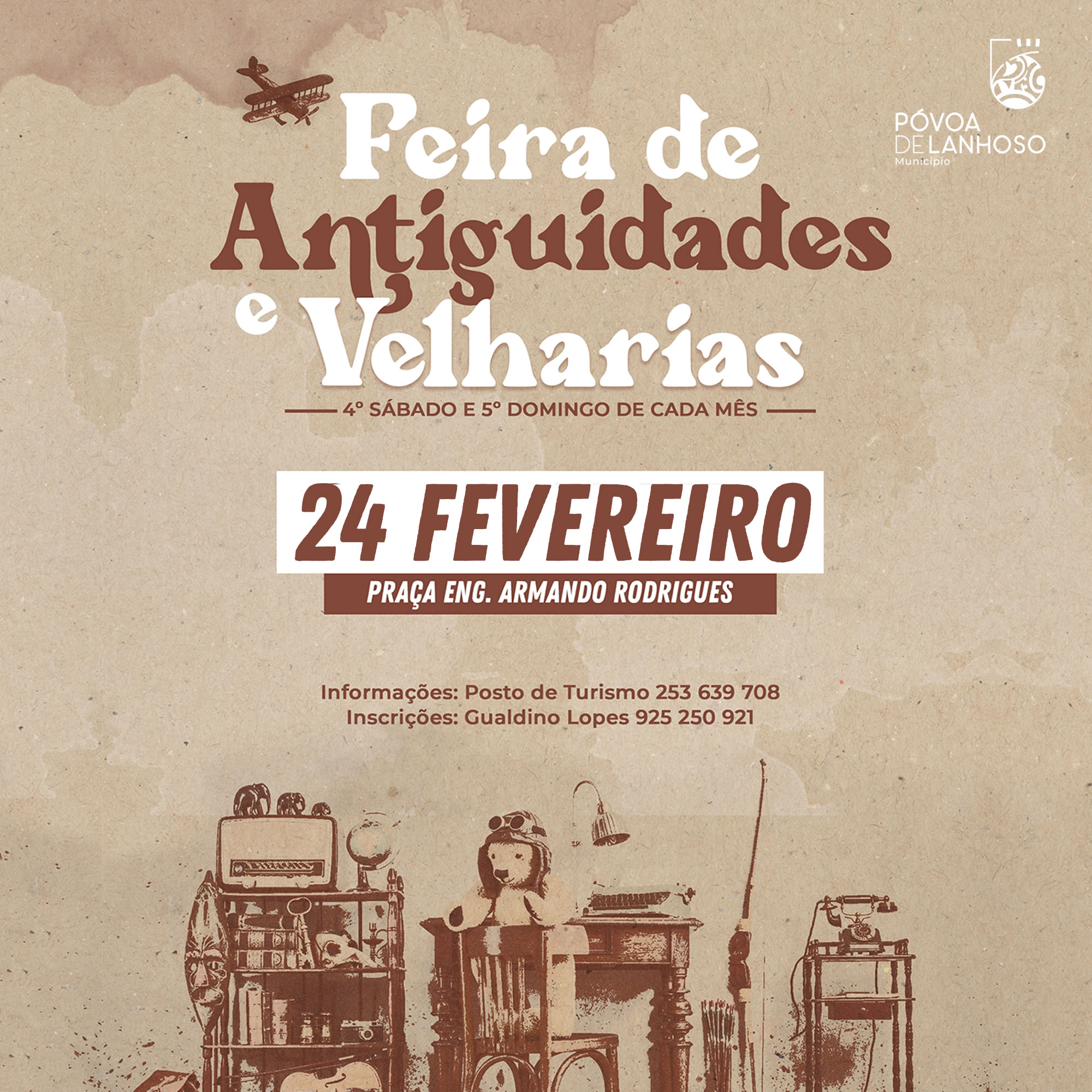 A Feira de Antiguidades e Velharias realiza-se no dia 24 de fevereiro na Praça Eng. Armando Rodrigues, entre as 8h00 e as 18h00.