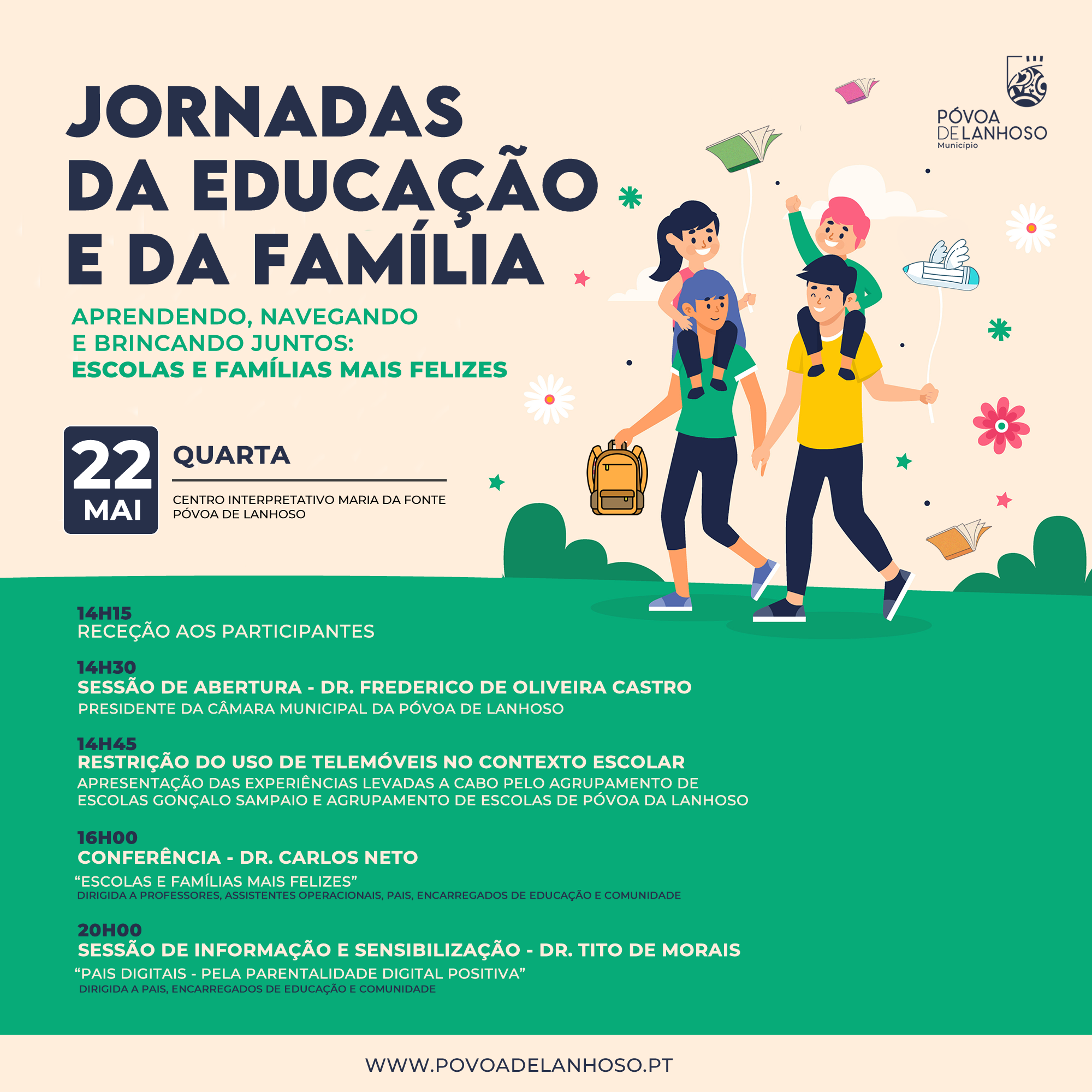 Assinalando o Dia Internacional da Família, a Câmara Municipal da Póvoa de Lanhoso promove, no próximo dia 22 de maio, as Jornadas da Educação e da Família “Aprendendo, Navegando e Brincando Juntos: Escolas e Famílias Mais Felizes”.