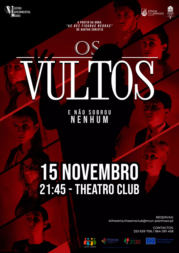 TEM – Teatro Experimental Maria apresenta no dia 15 de novembro no teatro CLub, o espetáculo “Os Vultos”, a partir da obra “As dez figuras negras”, de Agatha Christie.