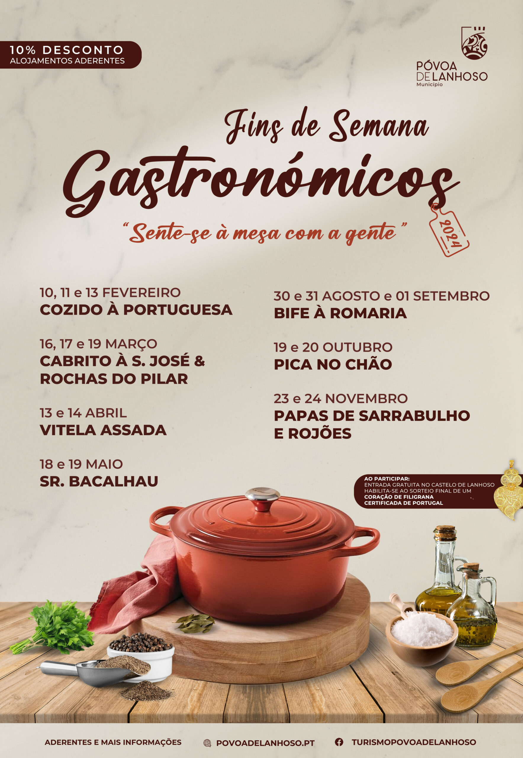Tiveram especial destaque dois pratos tradicionais que estão especialmente ligados à Póvoa de Lanhoso, designadamente o Cabrito à S. José e o Bife à Romaria, que os restaurantes povoenses irão apresentar nos seus menus, respetivamente, nos dias 16, 17 e 19 de Março, festa de S. José e nos dias 30 e 31 de Agosto e 1 de Setembro, Romaria de N.a Sr.a de Porto d’Ave.