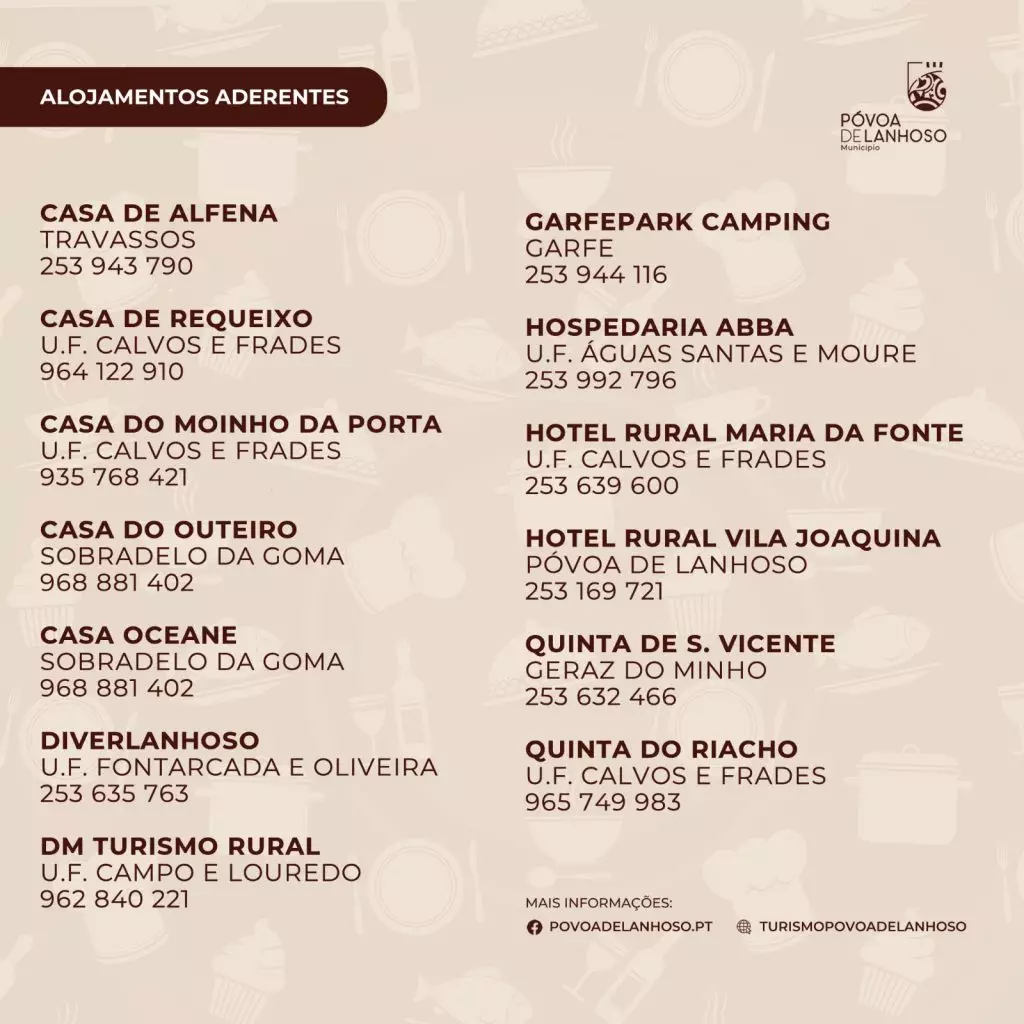 Quem almoçar ou jantar nestes estabelecimentos povoenses poderá ainda usufruir de um desconto nos 13 empreendimentos turísticos aderentes, sendo esta uma forma de aliar a oferta da gastronomia e da restauração ao alojamento.