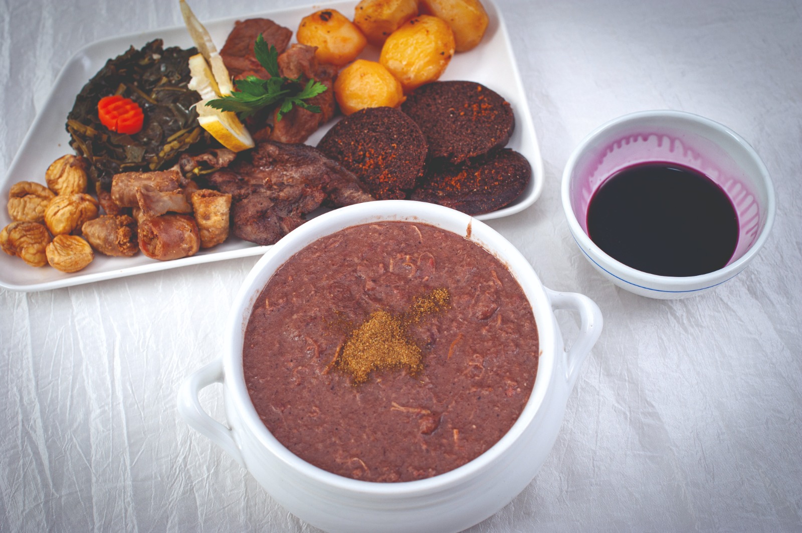 As papas de sarrabulho e rojões são tradicionalmente servidas no inverno, aquando da matança do porco e são um prato feito à base de carnes desfiadas (vaca, porco e galinha), sangue de porco e miolo de pão de trigo. As papas de sarrabulho servem de acompanhamento aos rojões de porco frito com batata e morcela (sangue de porco cozido).