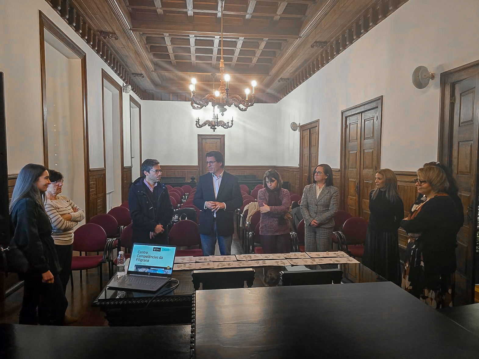 Teve lugar, no Salão Nobre, uma sessão que reuniu a responsável do Município pela área da Educação e Formação, Fátima Moreira, a diretora do CINDOR, Eunice Neves, a coordenadora do CINDOR, Paula Soares, a coordenadora do Pólo da Póvoa de Lanhoso desta entidade, Carla Carvalho, bem como artesãos e artesãs das oficinas de filigrana do concelho.